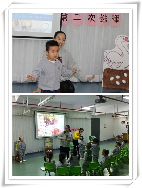 閱讀是深圳市遠恒佳教育集團幼兒部4I體驗課程的特色,本學期遠恒佳花園幼兒園在集團學前教育管理中心專家的引領下,通過園本備課、活動開展、撰寫反思,以及對《幸福的種子》(第二版)活動設計理念、類型特點及使用的了解,豐富一日生活中的閱讀形式(集體、區域、日常生活、親子),促進家庭、幼兒園閱讀觀念的更新與閱讀環境的優化,集團幼兒部在各園教學行政的組織下參加了第一輪的課例海選活動,從8所園24名教師中選出6名老師在遠恒佳花園幼兒園進行第二輪課例觀摩,遠恒佳花園幼兒園早閱組設計的三節活動在第一次課例海選中脫穎而出,她們分別是小五班羅文婷老師《蛇偷吃我的蛋》第二課時,中一班黃幸怡老師《公雞拳》第一課時,大班舒琴老師《你會我也會》第二課時。在第二次選課中,參加選課的姐妹園的園長老師齊聚遠恒佳花園幼兒園音體室,當然也少不了我們學前教育管理中心的唐玉萍教學總監和教學部部長孫樹志老師蒞臨遠恒佳花園幼兒園進行指導。
